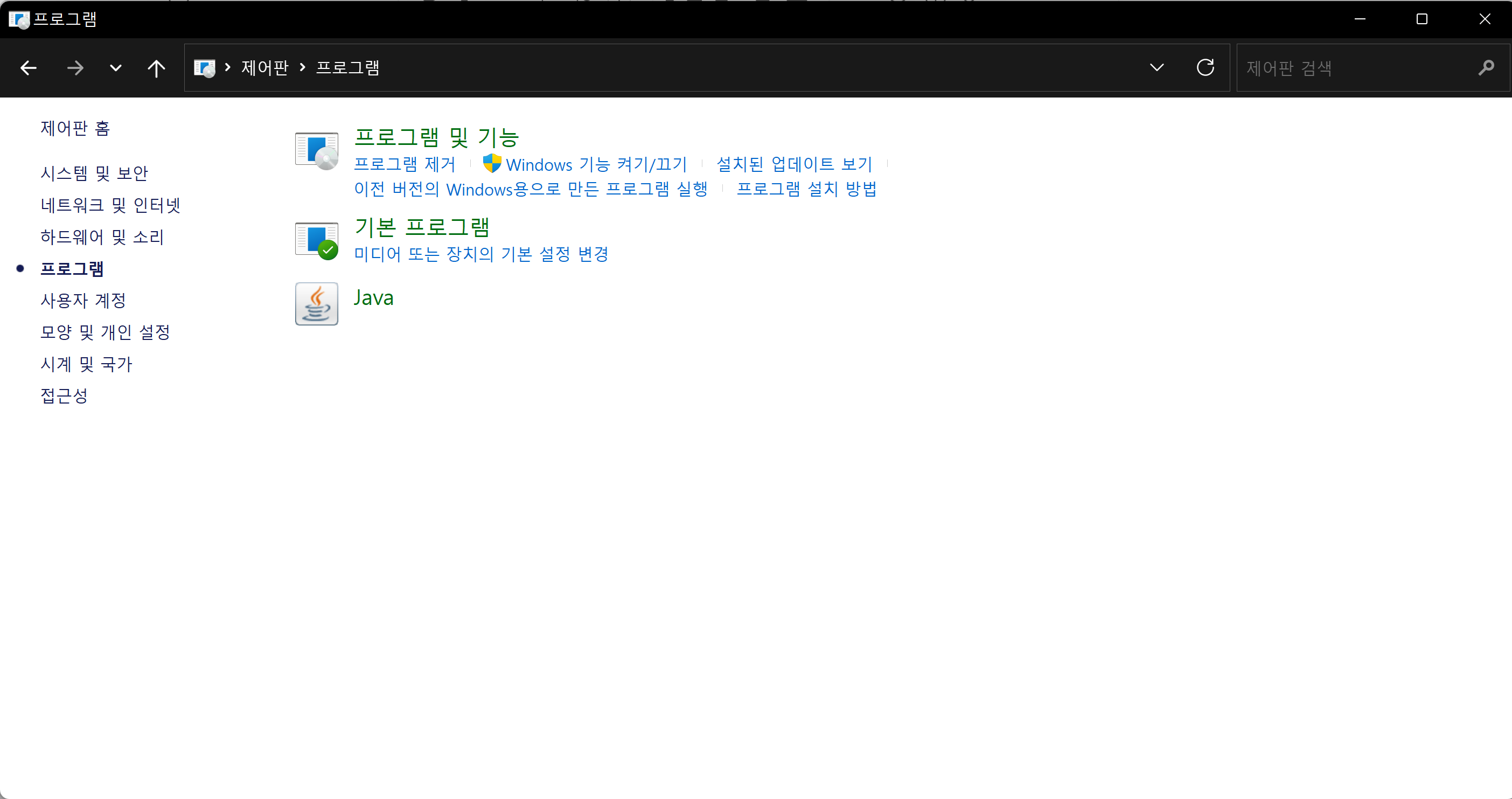 그리고 창이 하나 뜨면 control을 눌러 제어판으로 진입한 후, 프로그램을 눌러